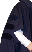 Je ein Knopf auf der Rückseite der Talare sorgt für festen Halt der Schärpe bzw. Banderole. |